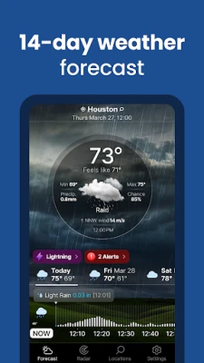 এই ব্যতিক্রমী অ্যাপ্লিকেশনের মাধ্যমে আপনি যেখানেই থাকুন না কেন, বিস্তারিত আবহাওয়ার তথ্য আপনার হাতের মুঠোয়। দিনের যেকোনো সময়ের জন্য বা আগামী সাত দিনের নির্ভুল পূর্বাভাস সহজেই জেনে নিন। এতে রয়েছে বর্তমান তাপমাত্রা ও "অনুভূত তাপমাত্রা", বিদ্যুতের গতিপথ নির্ণয়কারী, রেইনস্কোপের মাধ্যমে মিনিট-ভিত্তিক বৃষ্টিপাতের পূর্বাভাস, বাতাসের গতি ও দিক, চাপ ও বৃষ্টিপাতের বিস্তারিত তথ্য, সূর্যোদয়/সূর্যাস্তের সময় এবং লাইভ অ্যানিমেশন ও গ্রাফিক্স সহ ওয়েদার রাডার ও বৃষ্টির মানচিত্র। প্রতিটি তথ্যই গতিময় গ্রাফিক্সের সাথে উপস্থাপিত হয়, যা আবহাওয়াকে জীবন্ত করে তোলে। আপনি আপনার পছন্দ অনুযায়ী বিস্তারিত বা সংক্ষিপ্ত লেআউটের মধ্যে সহজেই পরিবর্তন করে প্রাসঙ্গিক তথ্য দেখতে পারবেন।